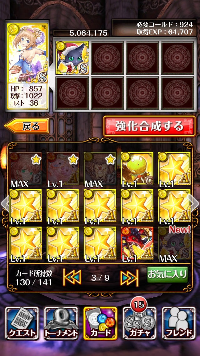 並び替えで落ちる歯車8個でAはMAXになるので、育成も楽々(^o^)
