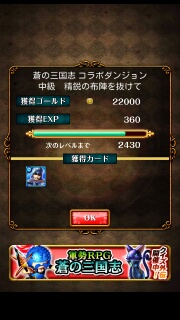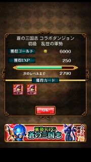 【蒼の三国志】コラボ、初級、中級に行ってきたよ(^o^)丿