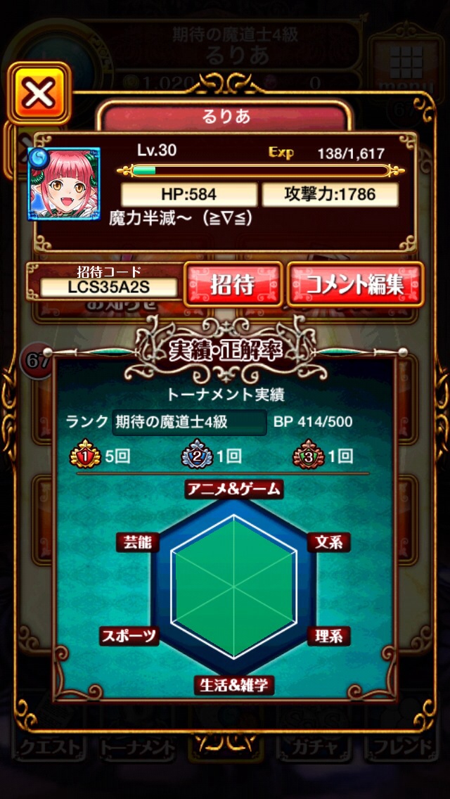 レベル30になったらアカウント公開しますと予告してたので、晒してみる(笑)