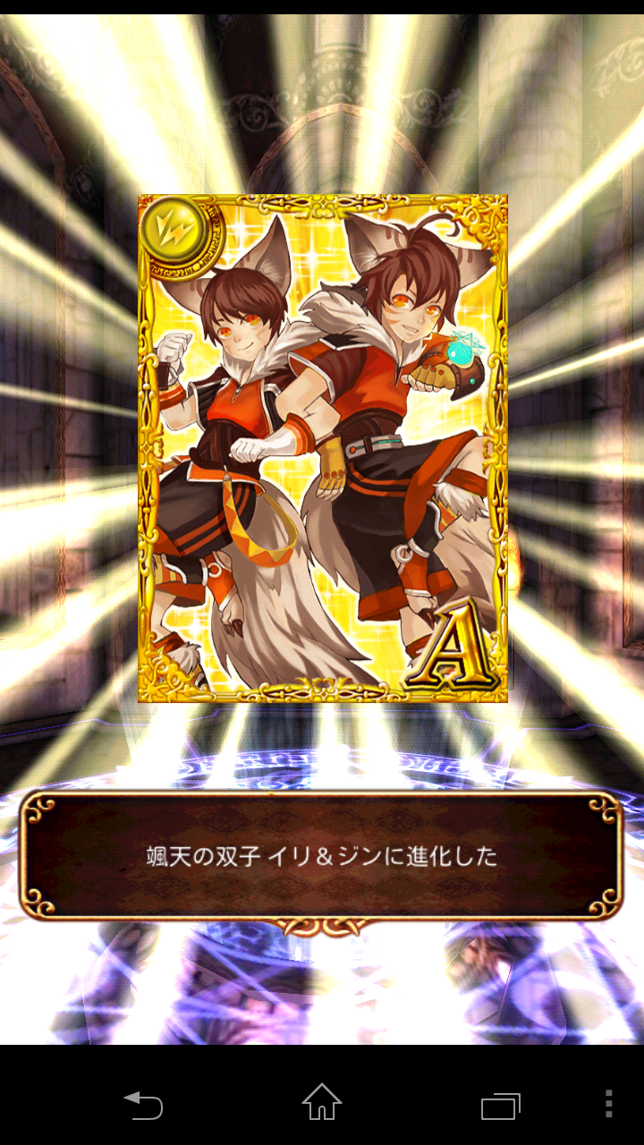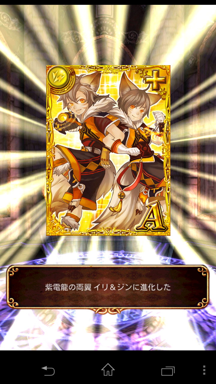 運よく進化素材が揃ってて、今日ゲットした魔道書18枚プラスうさぎで落ちた骨馬LV20とかをつぎ込んでここまで。(Cタヌキだけなかったけど運よく1発ゲット)