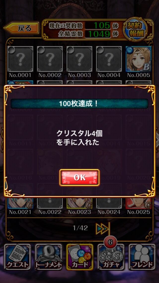 サブの方も図鑑100枚達成したので、クリスタル4個もらいました(^o^)