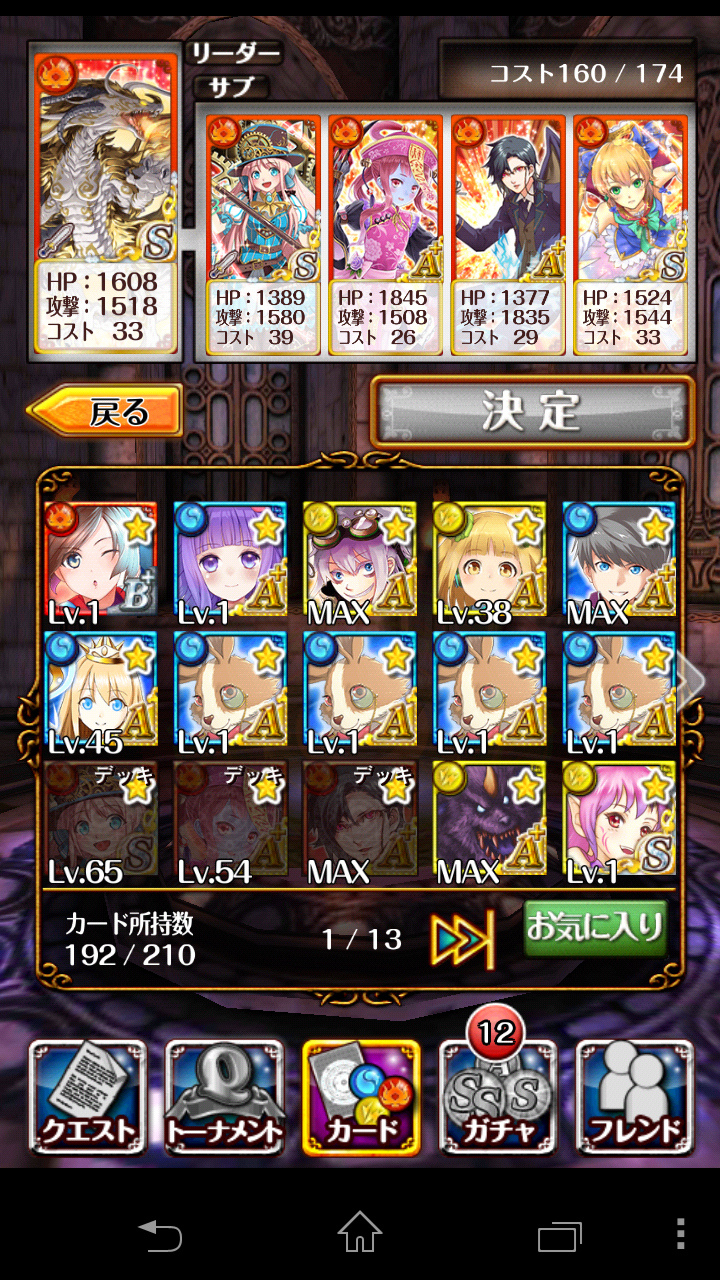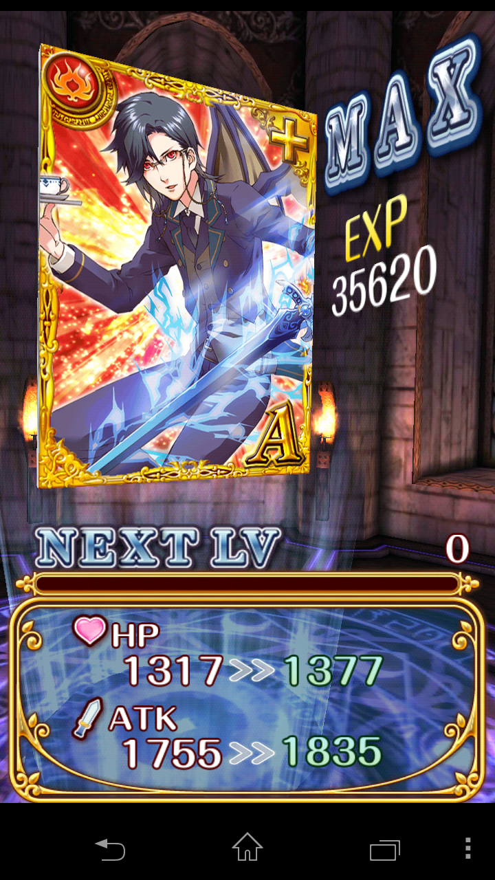 執事はSにするとSSが13ターンになるので(全体大回復)10ターンで使えるA+のままでもしかして良かったのかもです~。HP低いけど。