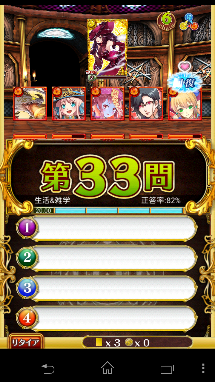 ここでもやっぱり正解率の低い問題に当たり、時々チェインが切れました。