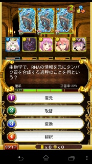 Q.生物学で、RNAの情報を元にタンパク質を合成する過程のことを何という?