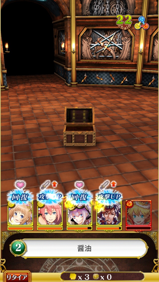 道中4ターン抜け、ボスで赤青パネル3枚引ければ7T抜けも出来そうですけど、まず無理(笑)