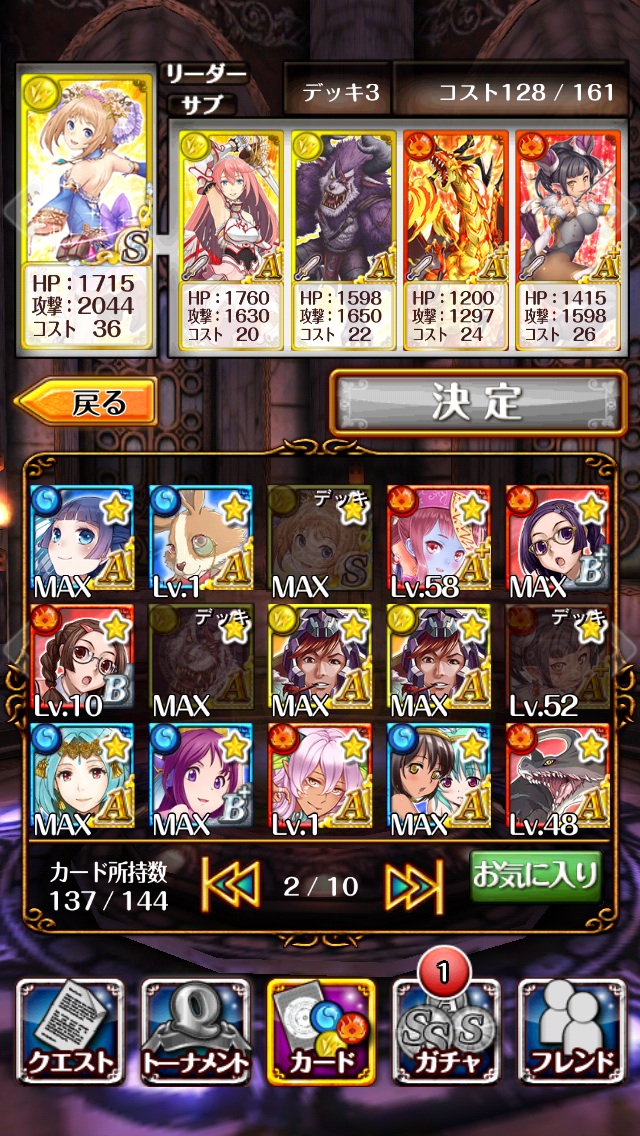 ユアン×2、アリューゼ、アイリス、ステファーヌと言うデッキに変更しました。