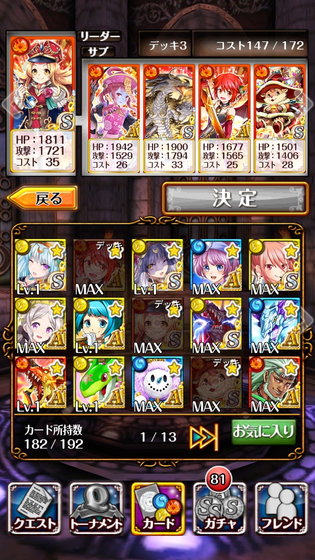 サブ垢は5段に行ける戦力がないので、4段デッキ強化全力(笑)