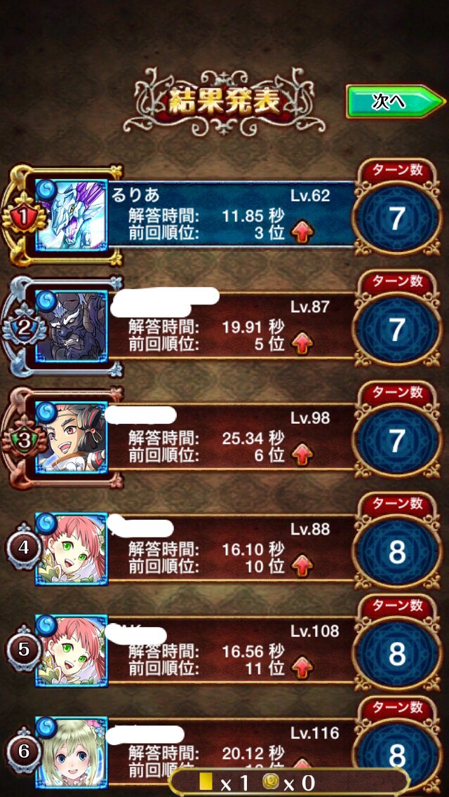 今魔力が94なので、30分まってクリ1個で4回まわす感じでしたけど、かなりの確率で1位2位が取れたので自分的にはかなりクイズを頑張ったと思います。