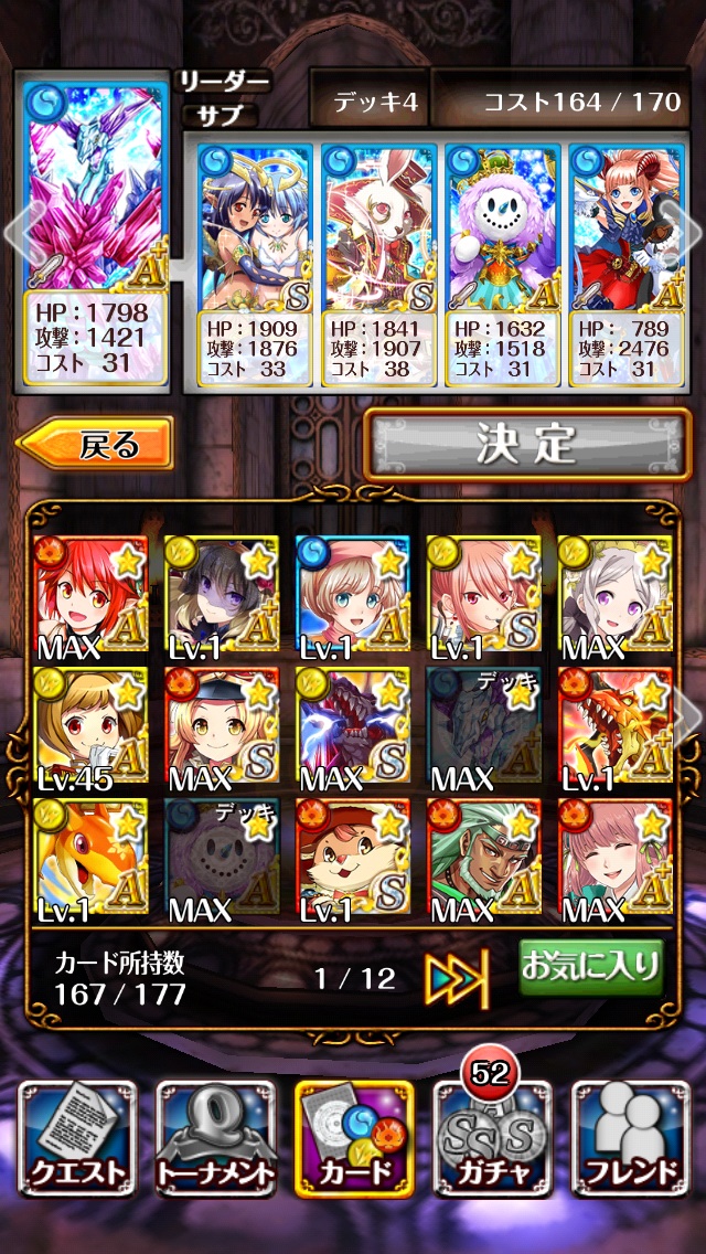 現在手持ちが140個くらいなので、数的にはちょっと心細いですが、無課金でプレイしてる方もたくさんいらっしゃいますし。