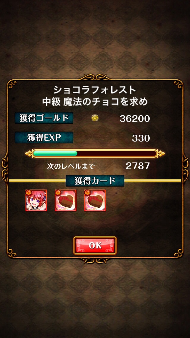 初回クリア報酬はバレンタインチョコ5枚でした。