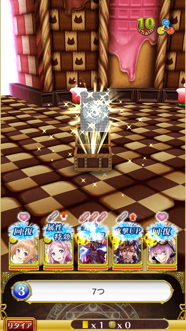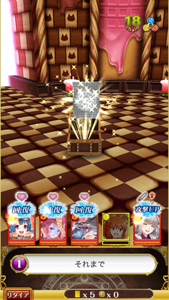 道中エンカウントは3回。並び替えでチョコのカードが落ちます。